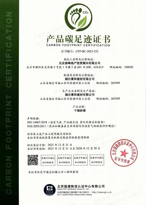 聚和(hé)建材取得(de)“産品碳足迹”認證證書(shū)
